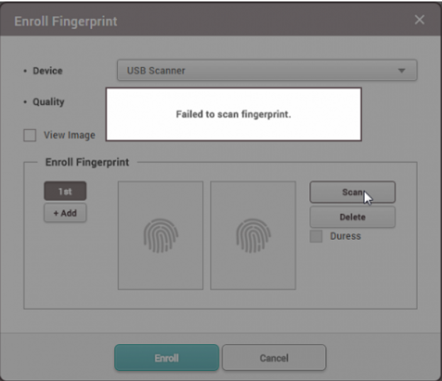 If you're getting the error below every time when scanning the fingerprint with Biomini, it is likely that USB Agent is being run with insufficient privileges.