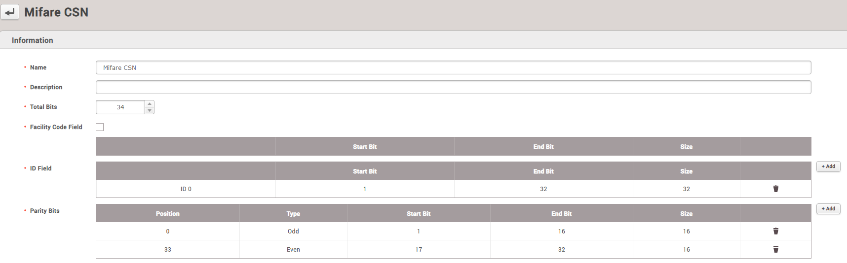 3-3. Let's say, you have 34 bit Mifare CSN card. The configuration is as follows.