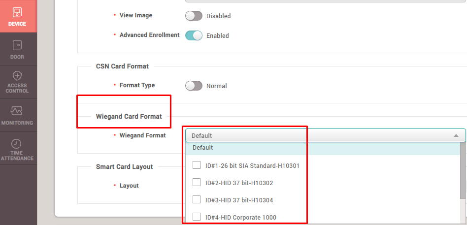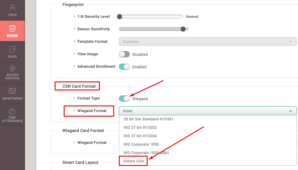 3-4 Click CSN Card Format and choose Format Type as [Wiegand]