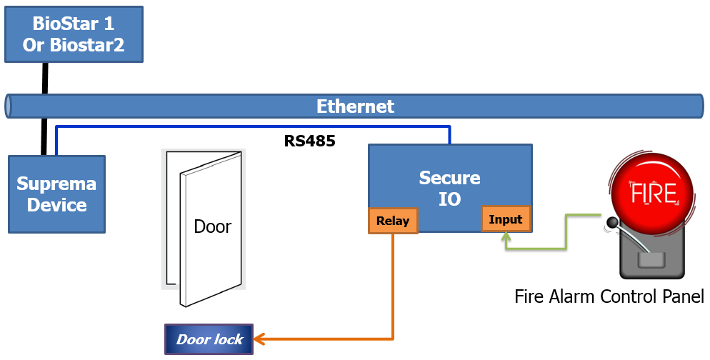 The concept of Biostar2 fire alarm zone is similar with BioStar version1 like below.